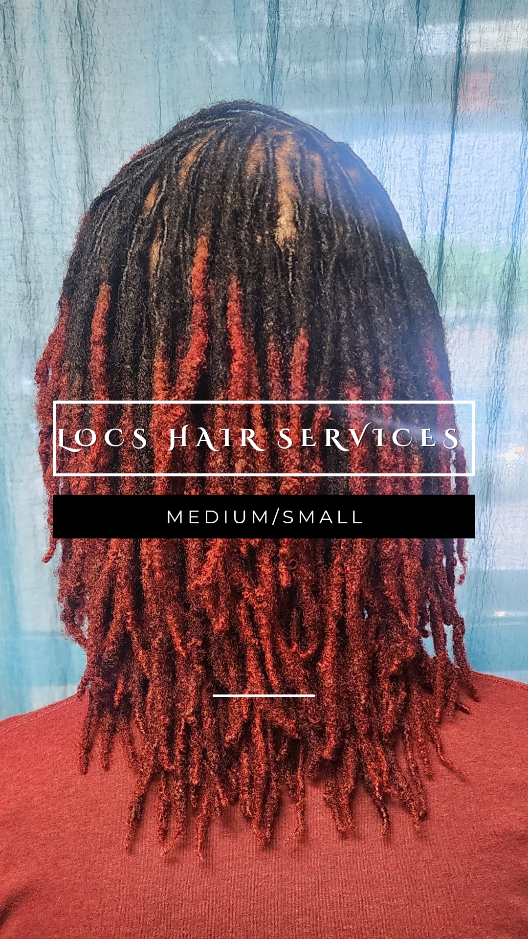Maintenance and care for established locs, including retwists, palm rolling, repairs, and healthy scalp support.