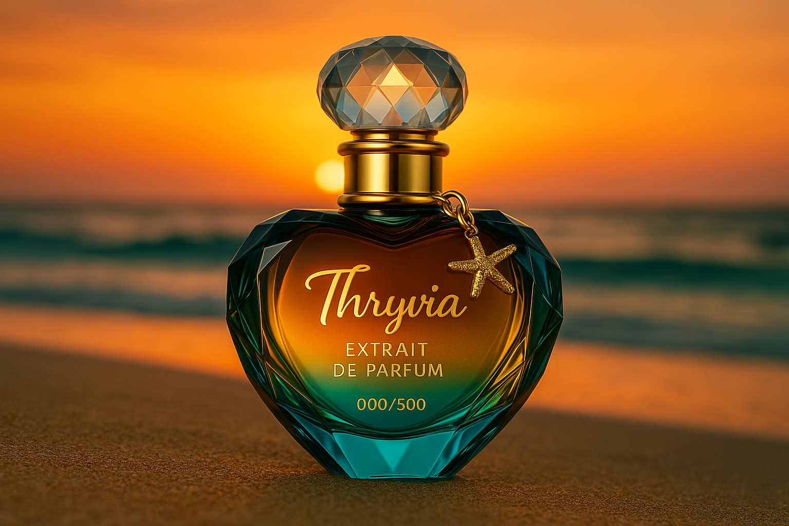 Vanilla, tonka, golden musk, and smooth woods settle into a quiet pull, the kind that draws two forces gently toward one another.Thryvia doesn’t rush forward. It moves like the Sun easing toward the Tides, a closeness that deepens with every breath, a warmth that wraps around the Tides without dimming their glow.