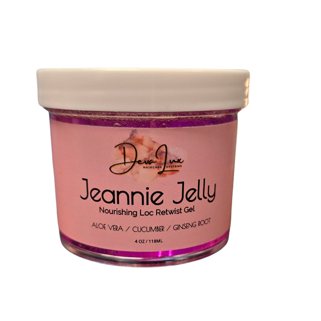 Jeannie Jelly delivers smooth, flexible hold without buildup or flaking. Designed specifically for loc retwists and edge styling, this jelly hydrates while keeping every strand in place. Its plant-powered formula strengthens, soothes, and nourishes the scalp while giving a clean, polished finish and lasting shine.